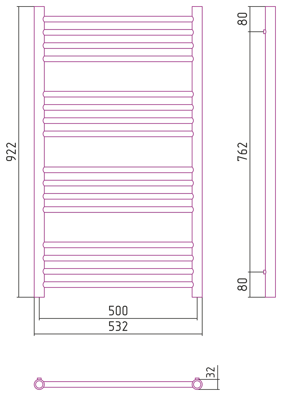 Размер полотенцесушителя:1000x500